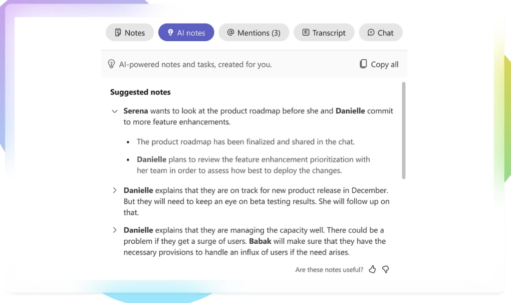 The “Intelligent Recap” feature of Microsoft Teams Premium uses AI to automatically provide a comprehensive overview of meetings. In doing so, it should help users save time and coordinate the next steps. Teams Premium customers, who have activated the feature, receive automatically generated meeting notes, recommended tasks, and personalized highlights so they can quickly find the most important information, even if they miss a meeting.